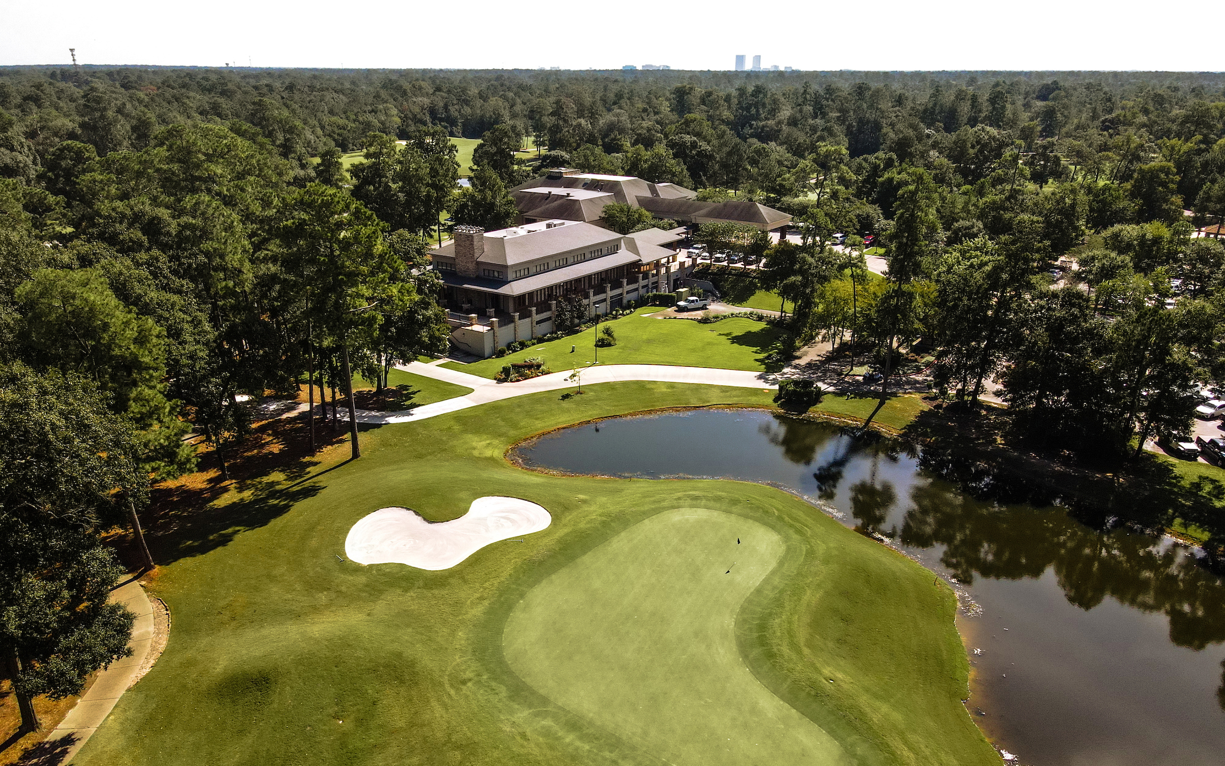 The finishing hole is a par 4 where tee shots should favor the right side, which will leave a short iron in. The green is fairly large and undulated, but players can get aggressive with trying to get their ball close.