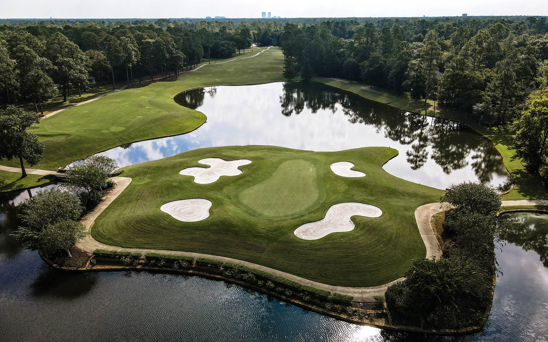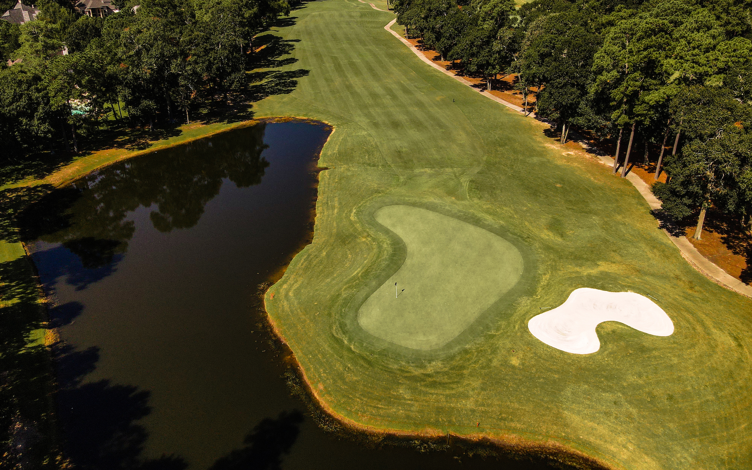 Favoring the right off the tee will help players avoid the water left and reach this par 5 in two. A lay-up is best played down the right to set up the best angle into the green. Anything long and left of this putting surface is not a good option.